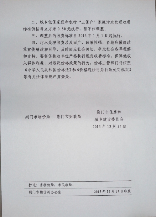 關于調整城區(qū)污水處理收費標準的通知