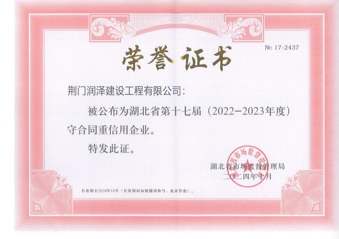 憑著“誠(chéng)信為本、質(zhì)量為根”的堅(jiān)守,潤(rùn)澤公司連續(xù)兩年獲評(píng)荊門市和湖北省(2022-2023年度)“守合同重信用企業(yè)”,市場(chǎng)競(jìng)爭(zhēng)力和品牌影響力持續(xù)攀升。